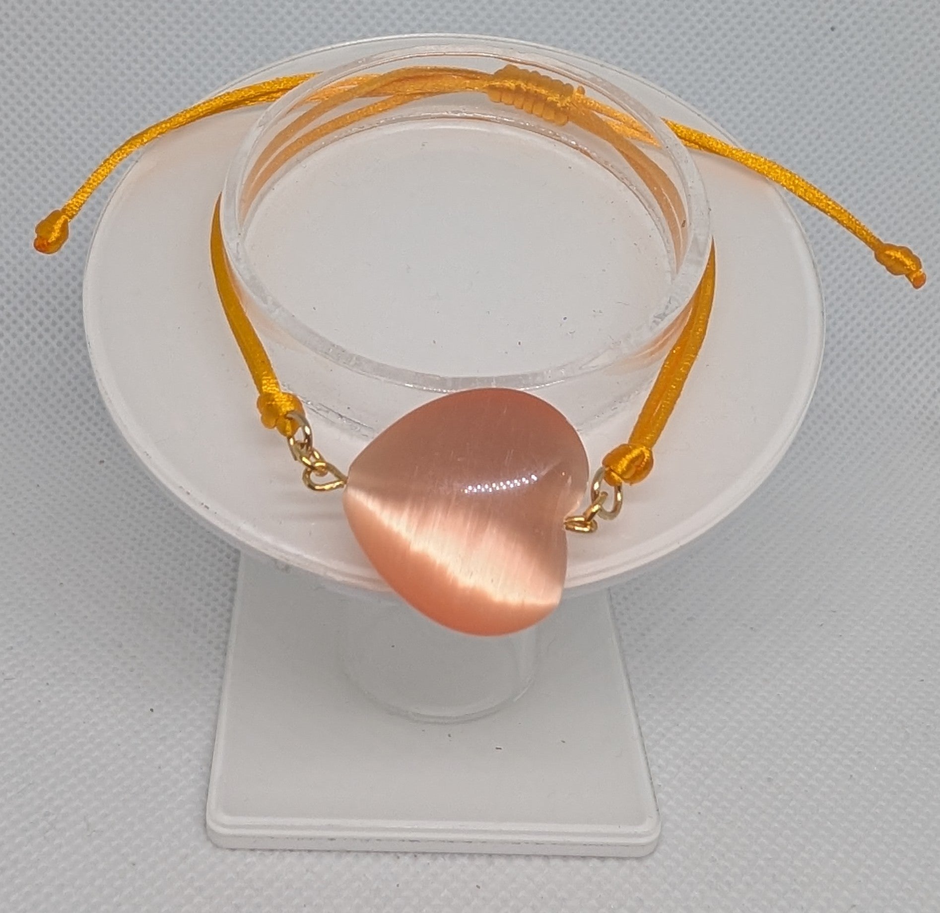 Transform your style with our Colorful Cat's Eye Heart Adjustable Tie Bracelet. The vibrant Cat's Eye Heart center focal, paired with a silky band, adds a touch of elegance to any outfit. Adjustable to fit any wrist size for ultimate comfort and versatility. Make a statement and stand out from the crowd!